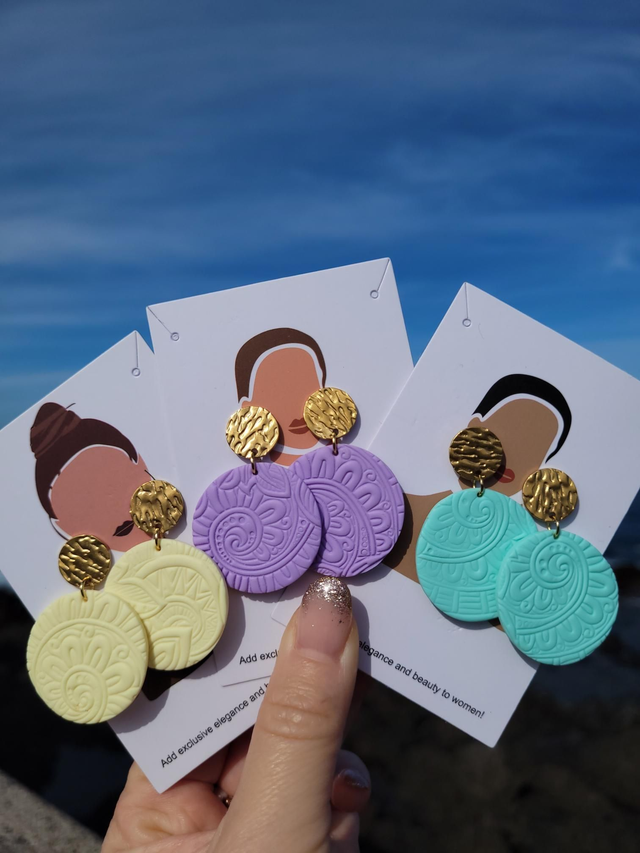 Fimo Ohrringe rund/breit mit Struktur